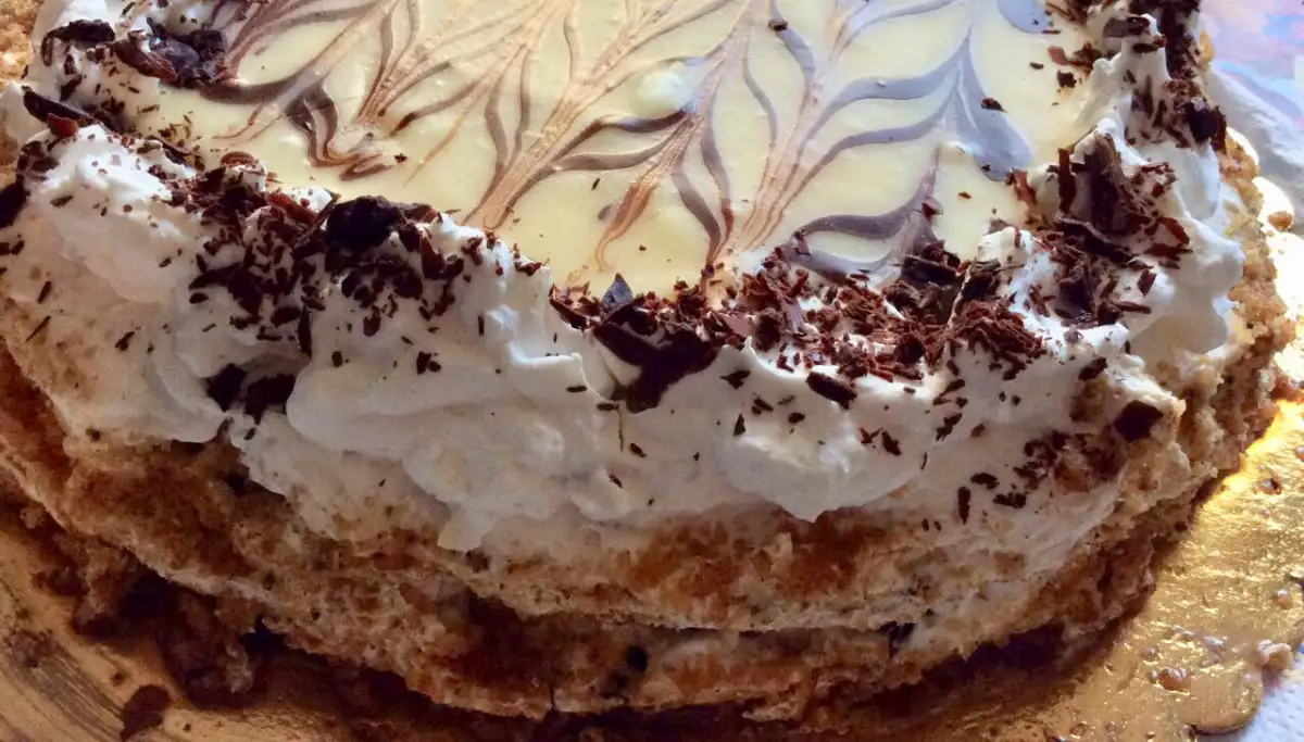 Лешникова Торта НеделяЛешниковата торта се оставя в хладилник за 24 часа.
